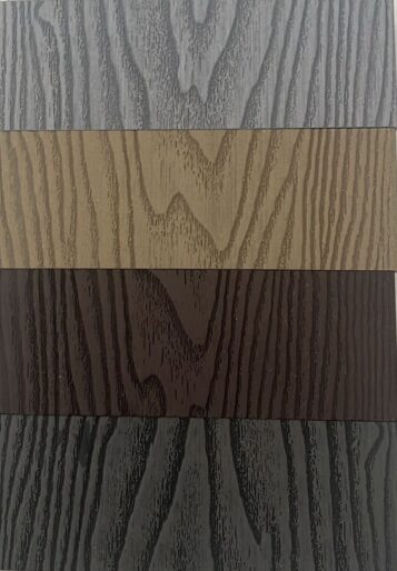 Decking Board contains sample piece of Platinum, Anthracite, Chestnut and Dark Walnut Decking